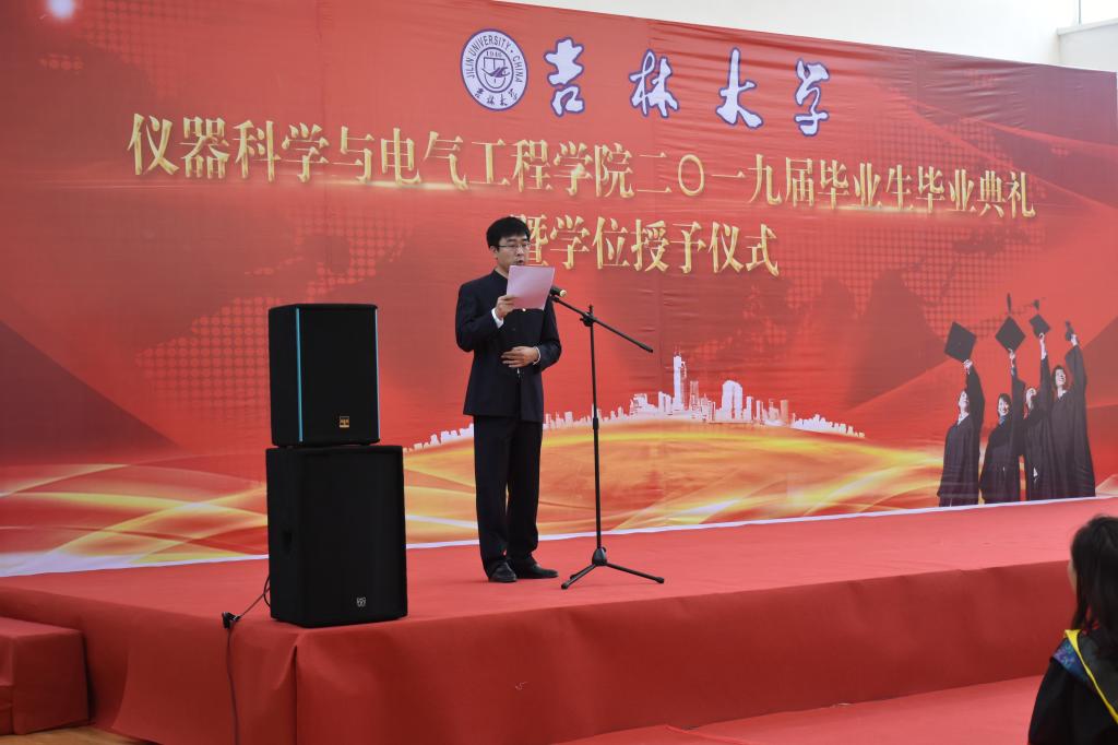 2019届毕业典礼暨学位授予仪式在朝阳校区体育馆隆重举行。院长嵇艳鞠、党委书记王爱民、副院长林婷婷、副院长刘长胜、地球信息探测仪器教育部重点实验室副主任孙忠、院教学委员会主任程德福教授、院学科学位评定分委会副主席于生宝教授,教师代表、学生家长代表以及全体2019届毕业生参加了此次典礼。毕业典礼由院党委副书记兼副院长周伟主持。