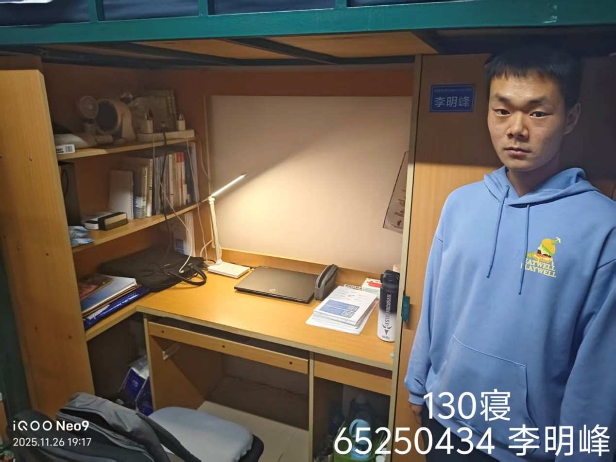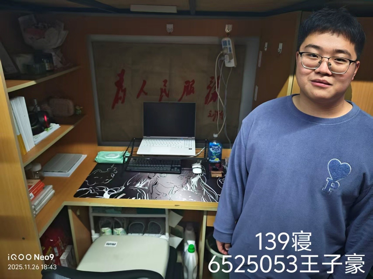 于2025年11月26日针对2025级本科生寝室组织开展了“优秀寝室”评比活动。本次活动由2025级辅导员史博日老师带队,学生会生活部成员参加,对所属年级学生寝室进行了全面深入的走访与检查,并最终评选出8个“优秀寝室”与5名“优秀个人”。
